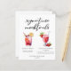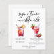 This chic signature mocktails menu paper sheet features custom black typography above 2 non-alcoholic drinks and their ingredients for your wedding bar. A cute Shirley Temple and Virgin Strawberry Daiquiri drawing add a cool flair to your bar menu. Complete with the couple's names and date for their reception.