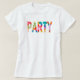 Shirt That Says Party. The word Party on a tee shirt. Perfect colourful words on the text Party. Perfect for any party.