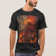 I give wanted to give this a 4 instead of a 5 because these Basic DARK T0shirts run unexpectedly SLIM or Narrow. Which is great if you do not have a potbelly, but I have a paunch. It isn't the shirt's fault that I've got a beer belly. The design and shirt itself is a quality cotton shirt. The color is more of a deep purple, but still a very pretty color. The Basic DARK T-shirts run a bit SLIMMER than the Basic Ts. The neck is a fraction narrower (or seems to be narrower) also. I'm a paunchy middle-aged woman and my neck is 12 inches (31cm) thick and the neckline fell about the same as in the photo of the man, and I had the desire to tug it a bit. So if you're a thick necked man or like loose shirts, be aware these are slimmer shirts. Once I get rid of my lockdown paunch it'll look great. The shirt washed well in cold water with no apparent bleeding. We don't have a dryer, so it hung dry. Did not shrink. Love the colors and the design. The design looks smaller on my shirt than it does on the model on-line. But still, it looks good on the shirt. The printing looks as it does on the model, just the size seems fractionally smaller. Washed garment in cold water, hung dry and design appeared unaffected.