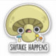 Shitake Happens Funny Mushroom Pun features a cute big mushroom reminding you that lousy stuff happens sometimes. Perfect pun gift for family and friends who love cute mushroom puns.