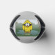 Penguin in yellow rain hat and slicker standing in the rain in a puddle as lightning strikes above, to personalise.