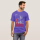 I give wanted to give this a 4 instead of a 5 because these Basic DARK T0shirts run unexpectedly SLIM or Narrow. Which is great if you do not have a potbelly, but I have a paunch. It isn't the shirt's fault that I've got a beer belly. The design and shirt itself is a quality cotton shirt. The color is more of a deep purple, but still a very pretty color. The Basic DARK T-shirts run a bit SLIMMER than the Basic Ts. The neck is a fraction narrower (or seems to be narrower) also. I'm a paunchy middle-aged woman and my neck is 12 inches (31cm) thick and the neckline fell about the same as in the photo of the man, and I had the desire to tug it a bit. So if you're a thick necked man or like loose shirts, be aware these are slimmer shirts. Once I get rid of my lockdown paunch it'll look great. The shirt washed well in cold water with no apparent bleeding. We don't have a dryer, so it hung dry. Did not shrink. Love the colors and the design. The design looks smaller on my shirt than it does on the model on-line. But still, it looks good on the shirt. The printing looks as it does on the model, just the size seems fractionally smaller. Washed garment in cold water, hung dry and design appeared unaffected.
