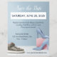 An attractive flyer design in blue tones that has a design of bordering shoes around text announcing a shoe sale. Great for retail shoe stores offering sales, discounts, grand openings and VIP days. The flyer design allows you to share your sale discount, location, hours, save the date and more.