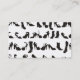 Black and white. Front has pattern made up of several kinds of women's shoes. Back has one image of a woman's high heel as well as customisable text for business information