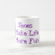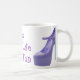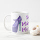 A fun girly slogan coffee mug for women who love shoes. Purple and lavender version.