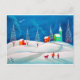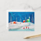 Shooting star folk naive art winter snow scene postcard