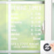 Shop Opening Hours window display for a shop or hairdressers etc. Alter details as you wish. Displays up to 7 days and opening times. White on clear.