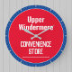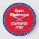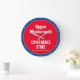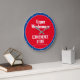 Wall Clock for a Village Shop, Local Stores, Convenience Store, or Retail Outlet. Edit the design to change the wording to suit. Blue and Red colours.