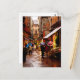 In the outdoor market area of Bologna, Italy, shoppers use colourful umbrellas as they browse the produce on offer. This postcard is fully customisable.