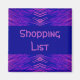 A digital abstract pattern: hot pink explodes onto a field of blue. It reads "Shopping List."