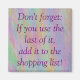 This useful and colourful magnet reads, "Don't forget: If you use the last of it, add it to the shopping list