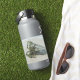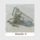 A digitally enhanced photograph of a discarded shopping trolley in mud printed on a sticker.