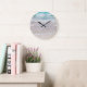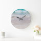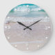 Add a little calm and serenity to any room, with this love wall clock, with a photo of rippling waves on the beach. White numbers and dots, around the edge of the clock. Customise to add text if you want.