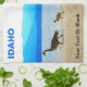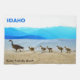 Cute Canada Geese (Branta canadensis) goslings are escorted along the shoreline of Lake Pend Oreille in northern Idaho by an adult. Customisable text reading "IDAHO" also appears. Customise further by adding your own additional text. This is a typical scene at City Beach park in Sandpoint.
