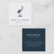 Coastal chic business cards for wedding planners, event planning businesses or any beach-based business feature a vintage etched style egret bird illustration in deep navy blue. Personalise with two lines of custom text on the front, and add your full contact information to the reverse side in white on navy.