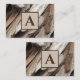 Driftwood photo on business cards & a monogram to personalize. Original photo close-up of rustic weathered brown & gray shoreline driftwood ; placed at a diagonal view.