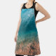 This apron features a stunning shoreline-inspired design, blending sandy brown tones at the base with turquoise and deep blue hues that mimic rippling water. The gradient effect creates a natural, calming look that brings the beauty of the coast into your kitchen. With sleek black neck and waist ties, it combines practicality with artistry, making it perfect for cooking, baking, or crafting. A unique gift for ocean lovers, travelers, or anyone who enjoys stylish kitchenwear infused with nature’s charm.