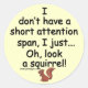 "I don't have a short attention span, I just... Oh, look a Squirrel!" Funny saying / quote about often being distracted and/or forgetful. Black text / letters with a light beige background that you can change the colour.