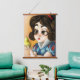 The polyester fabric displayed many wrinkles and several sharp creases throughout. At the bottom of the tapestry, I noticed a bulge in the fabric because it was not pulled tight enough before being connected to the wooden boards. It took me over an hour to spay water on the tapestry before putting it on an ironing board where I used a warm iron over a polyester cloth to remove the wrinkles and creases in the material. I was able to get out the wrinkles and creases that made that tapestry look as beautiful as its picture.
