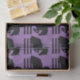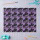 A horse and rider silhouette featuring an equestrian rider on a show jumper / hunter jumping over a fence. Purple background.