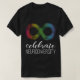 Show support for Autism and it's acceptance with this colourful advocacy t-shirt featuring a rainbow coloured infinity symbol representing the diversity of the autistic spectrum and the phrase, "Celebrate Neurodiversity".