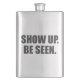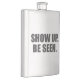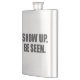 The product is a good size and came exactly as it was pictured. The lid is not attached to the flask, which could be dangerous on drunken nights... The print came out surprisingly well and looks very sharp. Would definitely recommend.
