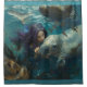 A beautiful mermaid is swimming in the ocean with her best friend, the manatee.
