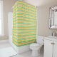 Designer shower curtain, golden yellows, blue and green, orange with white, the white can be switched to any colour of your choice.