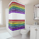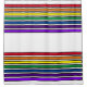 Rainbow coloured bars are evenly spaced in two bands at top and bottom of curtain. Colours from red at top to violet at the bottom. Bars outlined in black.