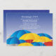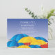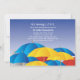 A colourful bridal shower invitation featuring open umbrellas against a light rain.