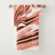 Showy salmon to red long wavy traces on white fund bath towel set