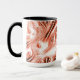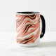Showy salmon to red long wavy traces on white fund mug
