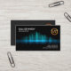 A sheet of shredded paper containing binary codes. A blue equilibrium wave line shoots through the papers to find a balance in the calculations. A creative representation of the work of a data scientist. Your name and job title are at the top left corner of the card. Diagonally across near the card's floor are where all your contact details are located. Northwards, you have an optional faux gold icon logo. Overleaf in a dark grey background, you have all the card's information at the right wall. At the top is the familiar faux gold icon logo, followed by the business details and your optional slogan to personalise your card. This is a strong, simple, concise card. Designed to impress, to make you stand out when you make a business presentation. A card solely for those dealing with data research or just about anyone who fancies a good blue wave.
