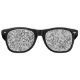 Shuffled small squares in tones of grey to clear retro sunglasses
