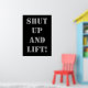 A black and grey poster, with the phrase "SHUT UP AND LIFT!" written on it. A must have poster for anyone who takes their training seriously! Weightlifting, Exercise, Gym, Motivational.