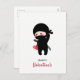Shy Blushing Ninja Holding Origami Paper Heart Holiday Postcard