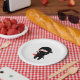 Shy Blushing Ninja Holding Origami Paper Heart Plate
