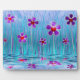 A digital drawing of cute stylised purple flowers with shining red centres. They're peering quizzically at you from the tall grass beside a pool of clear rippling water.