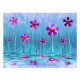 A digital drawing of cute stylised purple flowers with shining red centres. They're peering quizzically at you from the tall grass beside a pool of clear rippling water.
