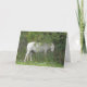 This cute greeting card features a beautiful photograph of a gorgeous white horse standing under a tree looking a bit shy.