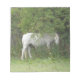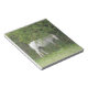 This awesome notepad features a beautiful photograph of a gorgeous white horse standing under a tree looking a bit shy.