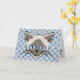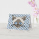 This greeting card that is easily customised for a birthday or any event features a design consisting of graphic Siamese cat faces in both a light and dark version with pale blue eyes.