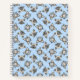 This notebook is embellished with a whimsical pattern of graphic Siamese cat faces in both a light and dark version with pale blue eyes.