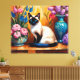 Siamese Cat And Bouquets in Vases watercolor Canvas Print