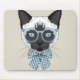 This design features a Siamese cat dressed in a blue pair of glasses and chequered bow tie.