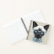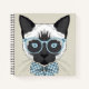 This design features a Siamese cat dressed in a blue pair of glasses and chequered bow tie.