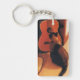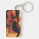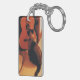 This rectangular keychain is designed with a photo of a Seal Point Siamese Cat playing a guitar.