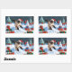 Siamese Cat Running in Snow with Christmas Hat Rectangular Sticker