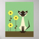 Stylised art design of Siamese cat with yellow flowers on beige background. Colours can be customised