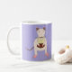 This awesome mug features a graphic image of a cute Siamese fancy rat with a cream coloured body, pink feet and paws, brown ears, nose and tail and little red eyes. The sweet little rat is holding a tasty Birthday cake in its paws. The cake is a chocolate cake topped with pale yellow frosting and filled with red jam. There are nine candles alight on top of the cake.